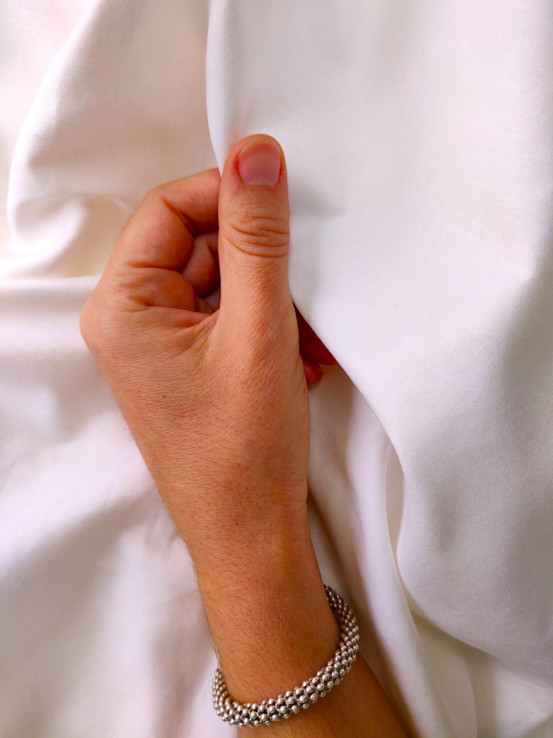 Ce coupon de tissu en satin rose pâle pour l’upcycling provient d’un drap d’hôtel de luxe. En effet, chez Revisité, nous donnons une seconde vie aux textiles d’hôtels de luxe et de palaces parisiens. Nous collectons, trions et sélectionnons les meilleures qualités de textiles que nous vous proposons en coupons de tissus de seconde main. Ainsi, ces matières nobles et d’une qualité exceptionnelle retrouvent une deuxième vie dans vos projets d’upcycling !